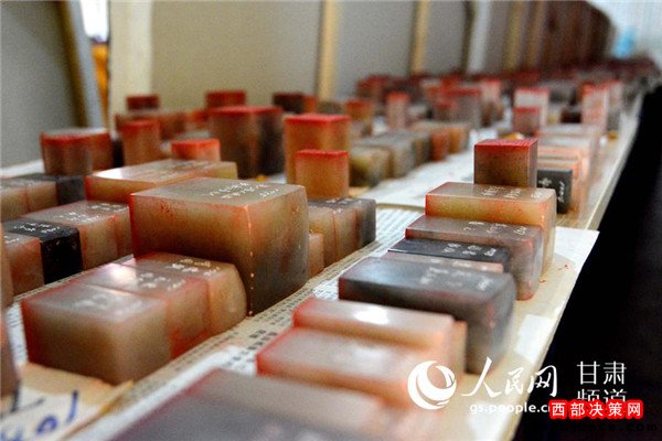 同時(shí),敦煌正覺寫經(jīng)院又組織篆刻書寫了50米真絲長(zhǎng)卷的《道德經(jīng)》,并附20幅老子出關(guān)圖。該長(zhǎng)卷采用篆刻方式,先將《道德經(jīng)》全文篆刻在大小不等的壽山石印章上,再將印章按照經(jīng)文順序印在真絲絹和皮紙上。每一句經(jīng)文刻一枚印章,刻章用的壽山石達(dá)一噸有余。