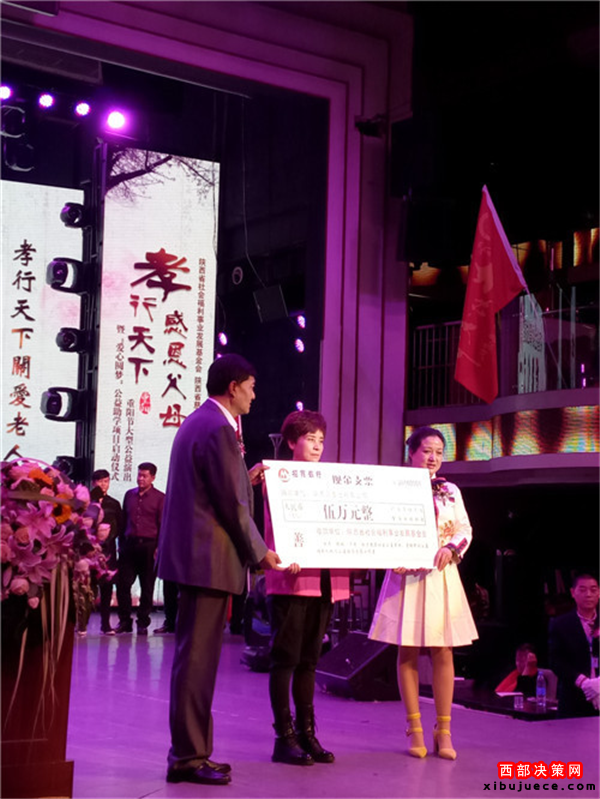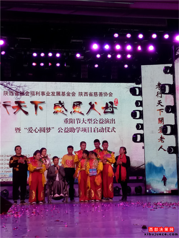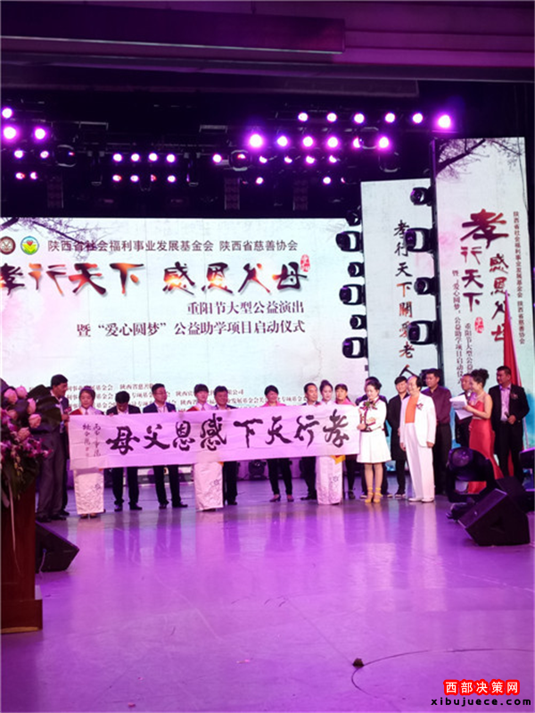 西部決策網(wǎng)訊 我國傳統(tǒng)的節(jié)日“九九重陽”也是“老人節(jié)”。值此佳節(jié)良晨,在西安金翅鳥演藝隆重舉行了由陜西省民政廳指導,陜西省社會福利事業(yè)發(fā)展基金會攜手陜西省慈善協(xié)會聯(lián)合主辦,陜西省社會福利發(fā)展基金會主持人專項基金委員會、陜西賓悅文化傳媒有限公司承辦,以及陜西省社會福利事業(yè)發(fā)展基金會陜北力量專項基金委員會、陜西省社會福利事業(yè)發(fā)展基金會關(guān)公文化專項基金委員會、陜西省社會福利事業(yè)發(fā)展基金會陜北民歌專項基金委員會、陜西省社會福利事業(yè)發(fā)展基金會影視文化專項基金委員會聯(lián)合協(xié)辦的“孝行天下感恩父母”大型公益演出暨“愛心圓夢”公益助學項目隆重啟動。