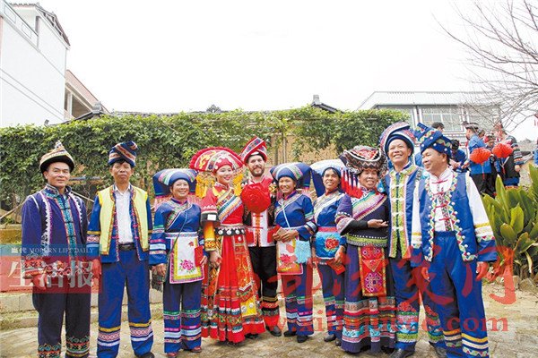 大紅的轎子、壯族服飾、八音鼓……12月5日,南寧市青秀區(qū)南陽(yáng)鎮(zhèn)古岳坡舉行了一場(chǎng)特殊的婚禮。在這場(chǎng)帶有濃郁的壯族特色的婚禮中,新郎是個(gè)來自意大利的“洋女婿”。說起這段美麗的跨國(guó)愛情,還得從2012年意大利的一場(chǎng)麻將說起。