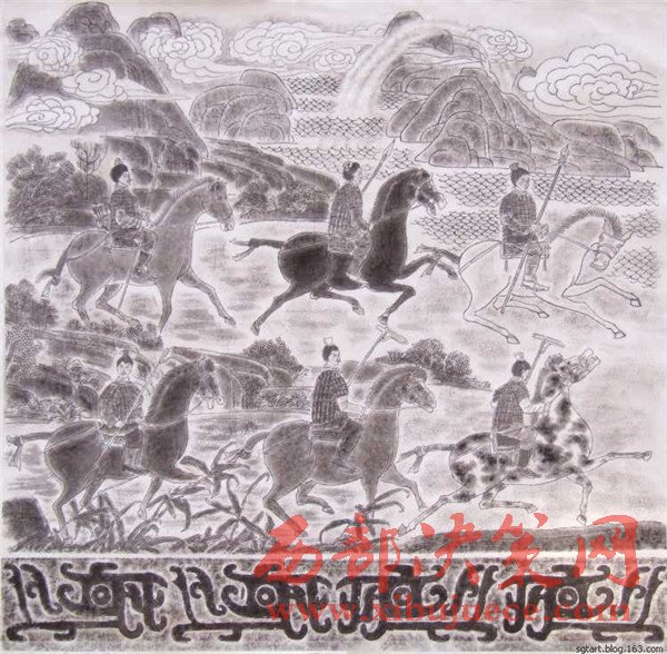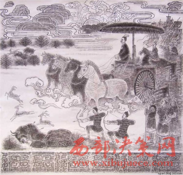 “永不滿足是前進(jìn)的動(dòng)力”。為了更直觀地表達(dá)石鼓文,他發(fā)揮自己書畫的藝術(shù)天賦,潛心研究,又創(chuàng)作出了十幅《石鼓文圖》。它以中國傳統(tǒng)繪畫形式每幅畫于八尺宣紙,各件既是單幅作品,又互相關(guān)聯(lián),洋洋巨著,連接在一起近乎三丈,氣勢恢弘,再現(xiàn)了十面石鼓的原始?xì)v史景象,再現(xiàn)了先秦時(shí)期政治、軍事和民眾生活、飛禽走獸和自然風(fēng)光。對(duì)人們了解、研究先秦歷史必將產(chǎn)生積極的輔助作用。