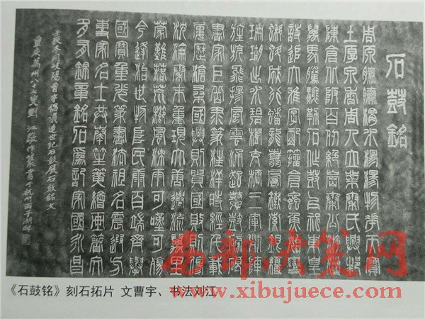 書法界權(quán)威西冷印社執(zhí)行社長劉江先生,在他近九十歲高齡時(shí),欣然為曹宇以篆書書寫了《石鼓銘》,全文192字,48行,書法端正秀麗,布局整齊完美,堪稱篆書精品。她將鐫刻于巨型石鼓之上,可謂《世紀(jì)石鼓》。