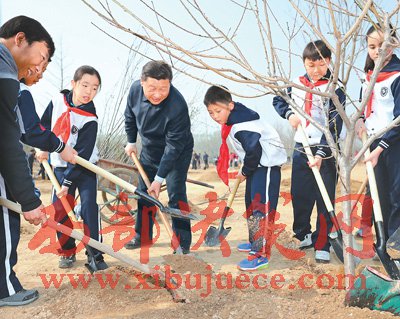 中共中央總書記、國家主席、中央軍委主席習近平29日上午在參加首都義務植樹活動時強調,植樹造林,種下的既是綠色樹苗,也是祖國的美好未來。要組織全社會特別是廣大青少年通過參加植樹活動,親近自然、了解自然、保護自然,培養(yǎng)熱愛自然、珍愛生命的生態(tài)意識,學習體驗綠色發(fā)展理念,造林綠化是功在當代、利在千秋的事業(yè),要一年接著一年干,一代接著一代干,擼起袖子加油干。