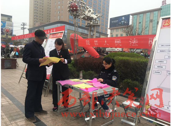 西部決策網(wǎng)-西部大開發(fā)(帥華鋒 杜杰 通訊員 張蕾)4月6日上午,隴縣第二十三個法治宣傳月啟動儀式在隴州廣場舉行,隴縣法院組織干警參與了當(dāng)日的普法宣傳活動。