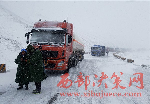 原標(biāo)題:國道215線當(dāng)金山路段因大雪道路結(jié)冰200多車輛被困