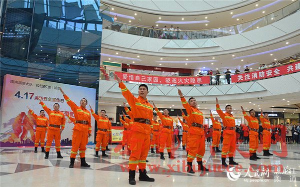 4月17日上午,在哈西萬達廣場以小虎隊經(jīng)典歌曲《愛》為背景音樂的舞蹈拉開了哈爾濱市消防支隊南崗大隊2017年“4·17”消防宣傳日活動的序幕。舞蹈的表演者全部為南崗大隊的消防官兵,歡快的樂曲和官兵們整齊的舞蹈動作吸引了市民紛紛駐足觀看宣傳活動。