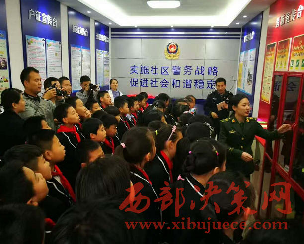 西部決策網(wǎng)-西部大開發(fā)訊(帥華鋒 劉恒)4月19日上午,寶雞市金臺區(qū)石油小學(xué)5年級學(xué)生在老師的帶領(lǐng)下參觀了東風(fēng)路派出所陳倉園社區(qū)警務(wù)室。來自金臺交警大隊、金臺消防大隊和東風(fēng)路派出所民警現(xiàn)場用生動活潑的語言給小學(xué)生們上了一堂社會實踐課。