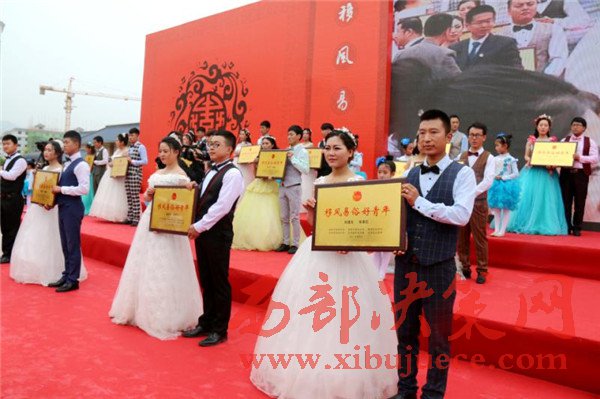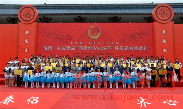 5月7日,甘肅隴南禮縣秦文化廣場上人潮如海,喜氣洋洋。倍受社會關注的隴南市首屆“向高價彩禮說不”移風易俗新婚禮在這里隆重舉行。來自禮縣各鄉(xiāng)鎮(zhèn)精準扶貧戶中的30對新人以隆重儉樸的新婚儀式喜結連理,見證了彼此的愛情。