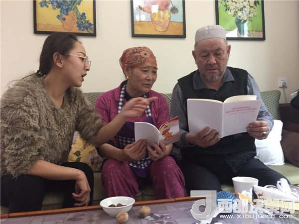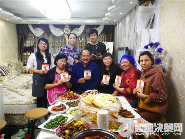 傍晚,一大群來自不同民族,不同單位的新疆兒女聚在了一起,紛紛加入到這個民族團(tuán)結(jié)的大聚會里,彈一首歡快悅耳的冬不拉,舞一曲深情優(yōu)美的賽乃姆,唱一首民族團(tuán)結(jié)的贊歌,將整個聚會推向高潮。賽買提·阿合買提高興地說:“我今天太開心了!這個結(jié)婚紀(jì)念日太有意義了,你的親戚,我的親戚,變成了我們的親戚,以后這就是你們的家,你們要經(jīng)常來啊!” 趁著大家都在興頭上,韓莉書記又拿出學(xué)校專門印制的《不忘初心 牢記使命-黨的十九大精神進(jìn)校園讀本》,熱情地為親戚們宣傳起十九大精神,給大家講起黨的好政策來。在得知艾來提·賽買提目前還沒有找到合適的工作,沒有穩(wěn)定收入的情況后,大家立刻表示愿意幫助他早日找到合適的工作,幫助他們解決最實際的困難,把溫暖送到他們的心坎中。大家唱唱跳跳,說說笑笑,其樂融融,在互幫互助中讓民族團(tuán)結(jié)之花越開越艷。