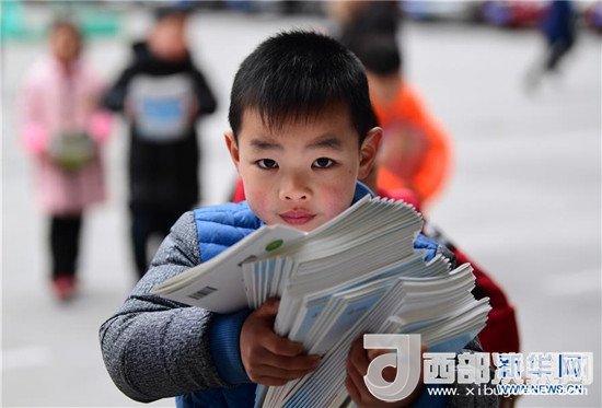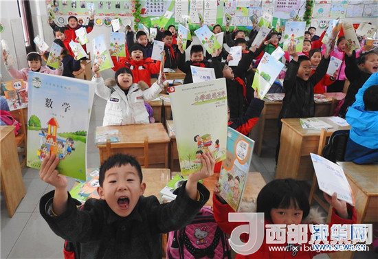 2月25日,江蘇省無錫市揚名中心小學的學生們手捧剛剛領取的新課本。(湯毅 攝)