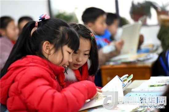 2月25日,貴州省遵義市文化小學四年級5班的學生在教室閱讀剛剛領到的新書。