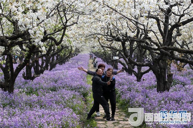 清明時(shí)節(jié),在江蘇省宿遷市三臺(tái)山森林公園梨香滿(mǎn)園景區(qū),白色的梨花和紫色的二月蘭爭(zhēng)相綻放,吸引眾多游客前來(lái)踏青賞花。 新華社發(fā)(周?chē)?guó)強(qiáng) 攝)