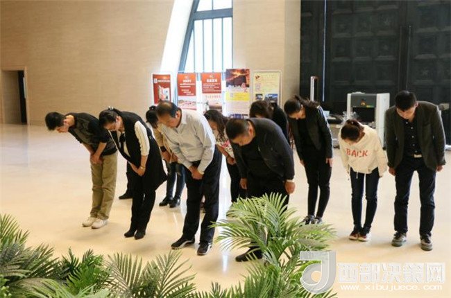 西部決策網(wǎng)——西部大開發(fā)訊(帥華鋒 李海瑞 通訊員 趙高銪)“南北山頭多墓田,清明祭掃各紛然。”在2018年“清明節(jié)”即將到來之際,為深切緬懷陜甘邊革命先輩的崇高風(fēng)范和豐功偉績,表達(dá)對(duì)革命先烈的諄諄敬意和無限哀思。4月2日下午,甘肅慶陽市南梁革命紀(jì)念館組織干部職工赴閆洼子四十二烈士墓開展清明祭掃活動(dòng),并向新館“五大書記”銅像雕塑致敬默哀。南梁革命紀(jì)念館館長聶明靜,副館長王雅麗,以及紀(jì)念館在崗干部職工30多人共同參加了祭掃活動(dòng)。
