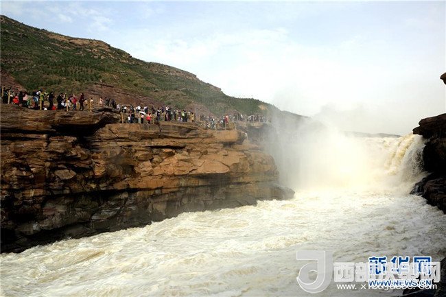 5月1日,游客在山西省臨汾市吉縣參觀壺口瀑布。