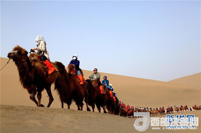 4月30日,游客在甘肅敦煌鳴沙山月牙泉景區(qū)游覽。新華社發(fā)(張曉亮攝)