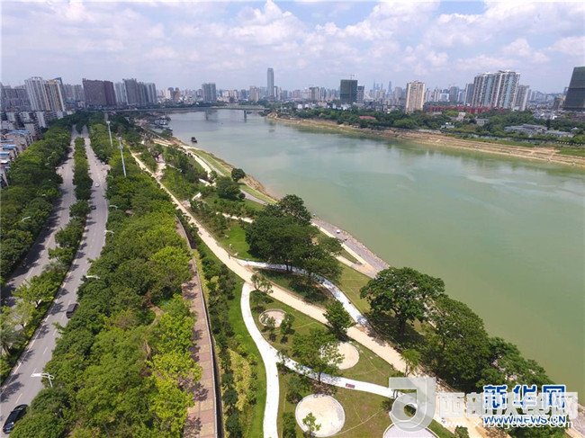 廣西南寧市自2012年起推進(jìn)全長(zhǎng)74公里的邕江綜合整治工程,以堤、路、景建設(shè)相結(jié)合,圍繞“治水、建城、為民”的主線,開(kāi)展“百里秀美邕江”建設(shè)。截至2018年4月,已建成60公里綠化工程,灘涂景觀帶也在加緊建設(shè)。整治工程全面建成后,邕江兩岸景觀將舊貌換新顏,也將成為當(dāng)?shù)匕傩盏男蓍e新去處。新華社記者 周華 攝