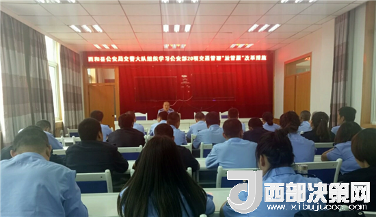 西部決策網——西部大開發(fā)訊(帥華鋒 通訊員 馬存福 蘇娟)為積極回應人民群眾對美好生活的新期待、新要求,公安部部署進一步深化改革,提升交通管理服務便利化工作,并公布了簡捷快辦、網上通辦、就近可辦等20項交通管理“放管服”改革新措施,9月1日起全面啟動推行。為深入推進公安部20項交通管理“放管服”改革新舉措,全面提升交通管理服務便利化工作水平,7月2日,甘肅西和縣公安局交警大隊組織全體人員學習20項交通管理“放管服”改革新舉措,大隊教導員張小明主持會議。