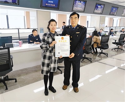 2018年全市新登記的第39萬(wàn)戶(hù)市場(chǎng)主體獲頒營(yíng)業(yè)執(zhí)照 記者梁璠 攝