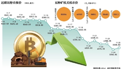 進(jìn)入2018年,比特幣價(jià)格一直處于震蕩下行之中。近兩周下跌趨勢愈加明顯,Wind數(shù)據(jù)顯示,繼11月14日比特幣報(bào)價(jià)跌破6000美元后,19日跌破5000美元,24日跌破4000美元。