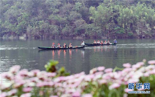 4月14日,游人在普者黑國家濕地公園蕩舟觀景。 位于云南省文山壯族苗族自治州丘北縣的普者黑國家濕地公園山水秀麗、風景如畫,吸引人們前來休閑度假。 新華社記者楊宗友攝