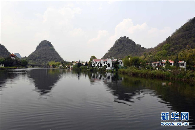 這是普者黑國家濕地公園一景(4月14日攝)。 位于云南省文山壯族苗族自治州丘北縣的普者黑國家濕地公園山水秀麗、風景如畫,吸引人們前來休閑度假。 新華社記者楊宗友攝