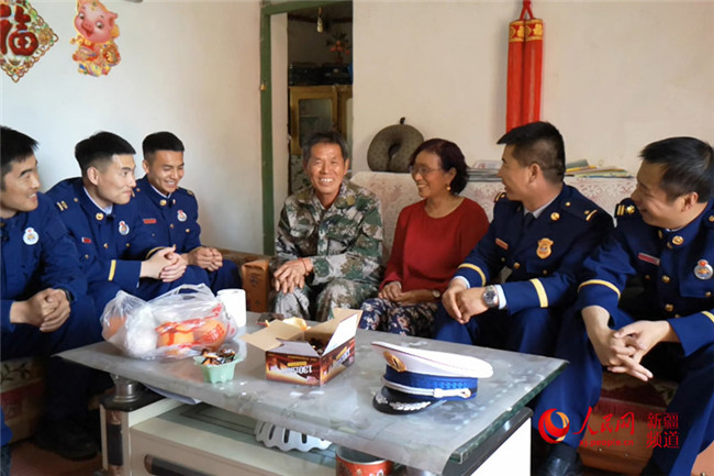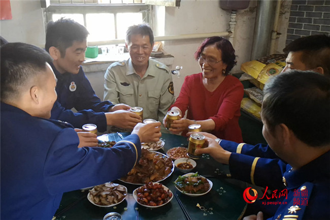 “媽媽?zhuān)覀冏D赣H節(jié)快樂(lè)!”在胡阿利的家里,六名森林消防員圍著蛋糕為胡媽媽送上了祝福。