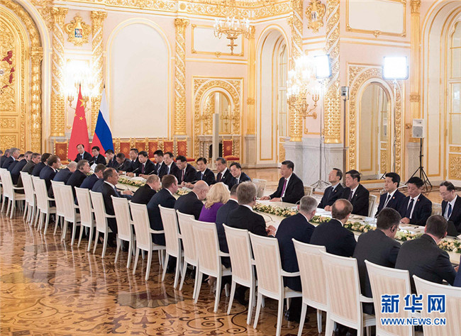 6月5日,國家主席習(xí)近平在莫斯科克里姆林宮同俄羅斯總統(tǒng)普京會談。這是兩國元首步入會場。 新華社記者 謝環(huán)馳 攝