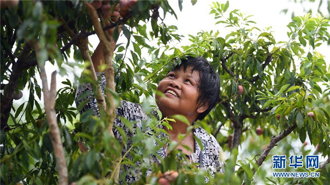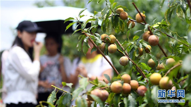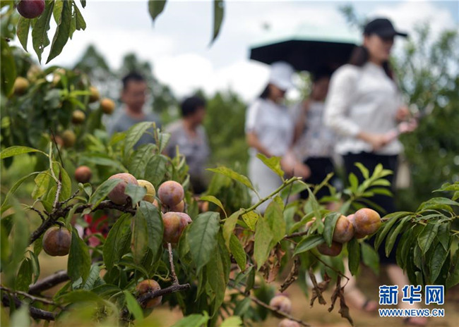 近日,廣西欽州市欽南區(qū)那麗鎮(zhèn)殿艮村種植的三華李進(jìn)入收獲季,吸引游客前來(lái)采摘。目前,殿艮村種植的“扶貧李園”共帶動(dòng)16戶貧困戶實(shí)現(xiàn)增收。 新華社記者 張愛(ài)林 攝