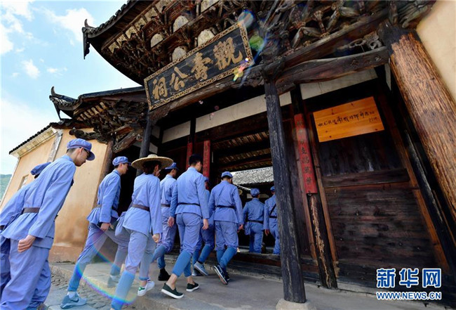 6月17日,在長汀縣南山鎮(zhèn)中復村觀壽公祠前,媒體記者在重溫當年紅軍長征前的場景。 新華社記者魏培全攝