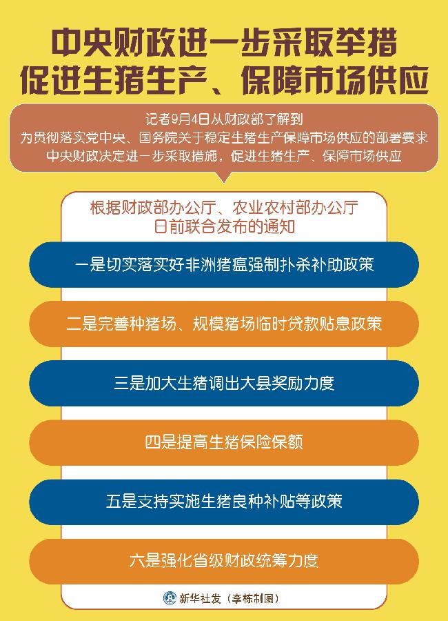 記者4日從財(cái)政部了解到,為貫徹落實(shí)黨中央、國務(wù)院關(guān)于穩(wěn)定生豬生產(chǎn)保障市場(chǎng)供應(yīng)的部署要求,中央財(cái)政決定進(jìn)一步采取措施,促進(jìn)生豬生產(chǎn)、保障市場(chǎng)供應(yīng)。