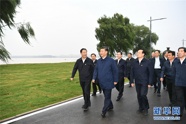 9月18日上午,中共中央總書記、國家主席、中央軍委主席習近平在鄭州主持召開黃河流域生態(tài)保護和高質(zhì)量發(fā)展座談會并發(fā)表重要講話。這是座談會前,習近平于17日下午在鄭州黃河國家地質(zhì)公園,沿黃河岸邊步行察看周邊環(huán)境,了解沿黃地區(qū)生態(tài)保護、水資源利用、堤防建設和防洪形勢等情況。 新華社記者 謝環(huán)馳 攝