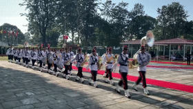 10月12日,尼泊爾首都加德滿都特里布萬國(guó)際機(jī)場(chǎng),軍樂隊(duì)為歡迎儀式做準(zhǔn)備。新華社記者丁林?jǐn)z