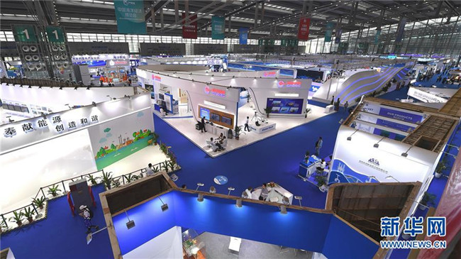 10月15日,觀眾在中國海洋石油集團有限公司展臺了解海洋石油286深水工程船。 新華社記者毛思倩攝