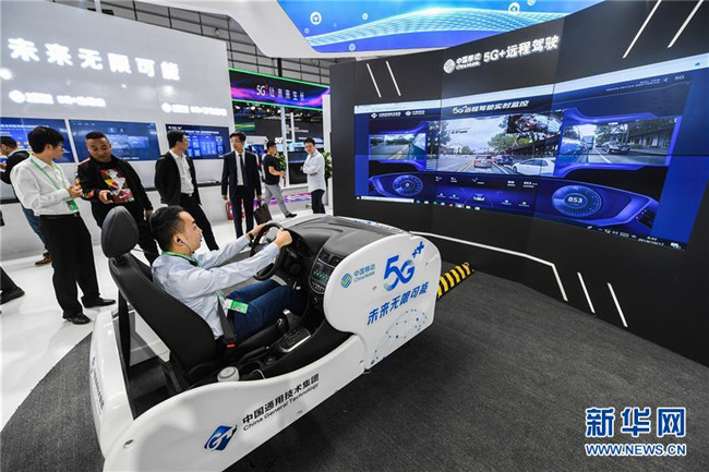 這是互聯(lián)網之光博覽會現(xiàn)場展示的基于5G技術的遠程駕駛系統(tǒng)(10月18日攝)。 新華社記者 徐昱 攝