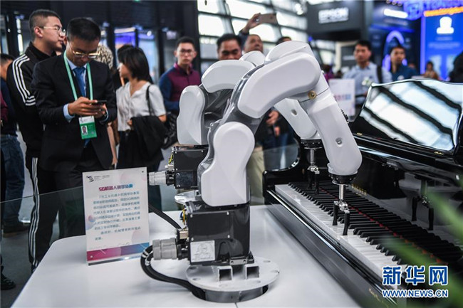 這是互聯(lián)網之光博覽會現(xiàn)場展示的能彈鋼琴的5G機器人(10月18日攝)。 新華社記者 徐昱 攝