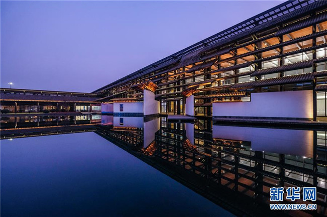 這是10月19日拍攝的烏鎮(zhèn)互聯(lián)網國際會展中心夜景。 新華社記者 徐昱 攝