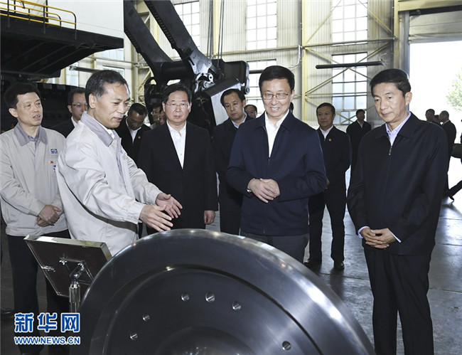 太原重型機械集團有限責(zé)任公司是新中國自行設(shè)計建設(shè)的第一座重型機械廠。韓正來到這里,考察礦山挖掘機、高鐵輪對等先進機械研發(fā)生產(chǎn)情況。韓正強調(diào),重型機械是國之重器,是先進制造業(yè)的重要支撐,要加快產(chǎn)品智能化步伐,提高生產(chǎn)線和生產(chǎn)設(shè)備的國產(chǎn)化率,實現(xiàn)精密零部件加工的技術(shù)突破,積極拓展“一帶一路”沿線國家市場,加強人才隊伍建設(shè),打造具有國際競爭力的高端裝備制造產(chǎn)業(yè)。韓正走進生產(chǎn)車間,勉勵一線工人抓住轉(zhuǎn)型升級機遇,推動企業(yè)加快發(fā)展,實現(xiàn)個人價值。