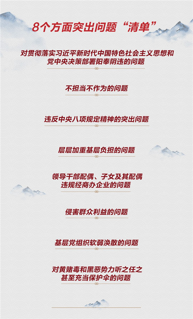去年7月,一份《關于在“不忘初心、牢記使命”主題教育中開展專項整治的通知》印發(fā)全國,列出了8個方面的突出問題。主題教育把開展專項整治作為增強實效的重要抓手,做到問題不解決不松勁、解決不徹底不放手、群眾不認可不罷休。12月底,中共中央政治局“不忘初心、牢記使命”專題民主生活會指出,“突出問題專項整治成效明顯”。