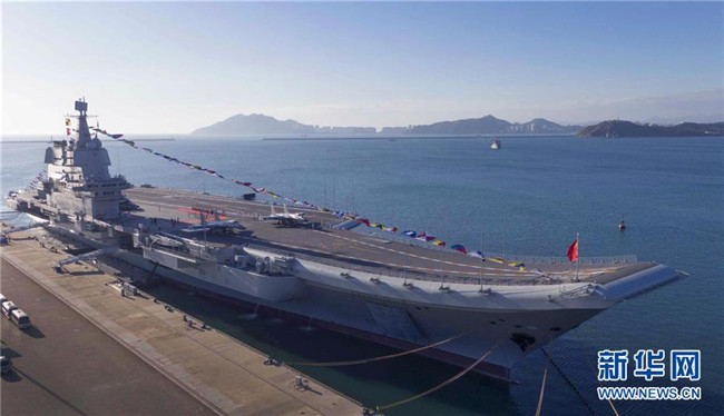 2019年12月17日,我國第一艘國產(chǎn)航空母艦山東艦在海南三亞某軍港交付海軍。經(jīng)中央軍委批準,我國第一艘國產(chǎn)航母命名為“中國人民解放軍海軍山東艦”,舷號為“17”。這是2019年12月15日拍攝的停靠在海南三亞某軍港的山東艦(無人機照片)。 新華社記者 李剛 攝