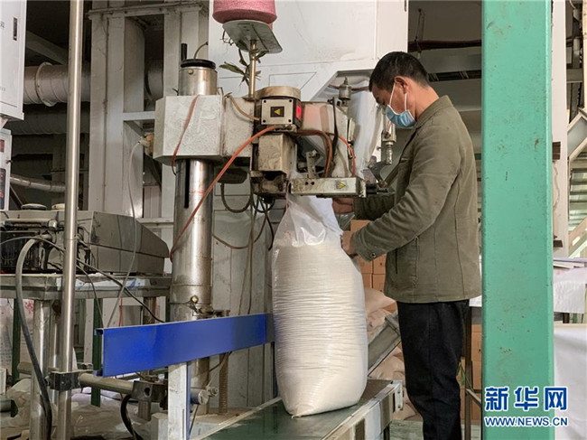 2月7日,在位于洞庭湖畔的湖南南縣,一家米業(yè)公司已經(jīng)復工。 新華社發(fā)