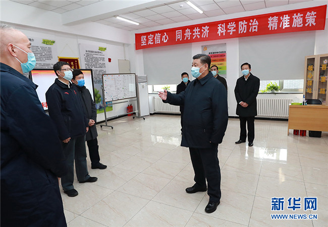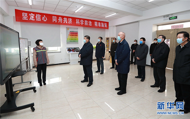 2月10日,中共中央總書(shū)記、國(guó)家主席、中央軍委主席習(xí)近平在北京調(diào)研指導(dǎo)新冠肺炎疫情防控工作。這是習(xí)近平在朝陽(yáng)區(qū)安貞街道安華里社區(qū),了解基層一線疫情聯(lián)防聯(lián)控情況。 新華社記者 鞠鵬 攝