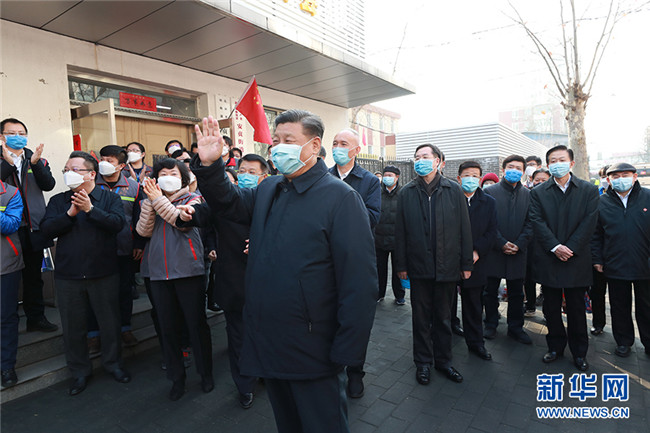 2月10日,中共中央總書(shū)記、國(guó)家主席、中央軍委主席習(xí)近平在北京調(diào)研指導(dǎo)新冠肺炎疫情防控工作。這是習(xí)近平在朝陽(yáng)區(qū)安貞街道安華里社區(qū),了解基層一線疫情聯(lián)防聯(lián)控情況。 新華社記者 龐興雷 攝