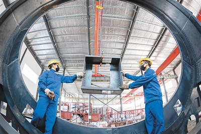 今年以來,江蘇省海安市在科學(xué)防控疫情的同時,及時為企業(yè)解難紓困,幫助民營企業(yè)迅速恢復(fù)產(chǎn)能、拓展國內(nèi)外市場,保持經(jīng)濟(jì)平穩(wěn)運(yùn)行,確保務(wù)工人員有崗上、有活干、有錢賺。圖為5月17日,在海安市白甸鎮(zhèn)一企業(yè)車間內(nèi),工人在趕制建材裝備訂單。翟慧勇攝(人民視覺)