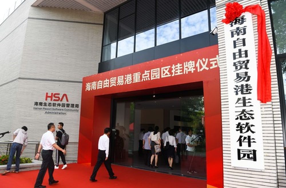 在海南澄邁縣拍攝的海南自由貿易港生態(tài)軟件園掛牌儀式現(xiàn)場。(新華社記者楊冠宇 攝)