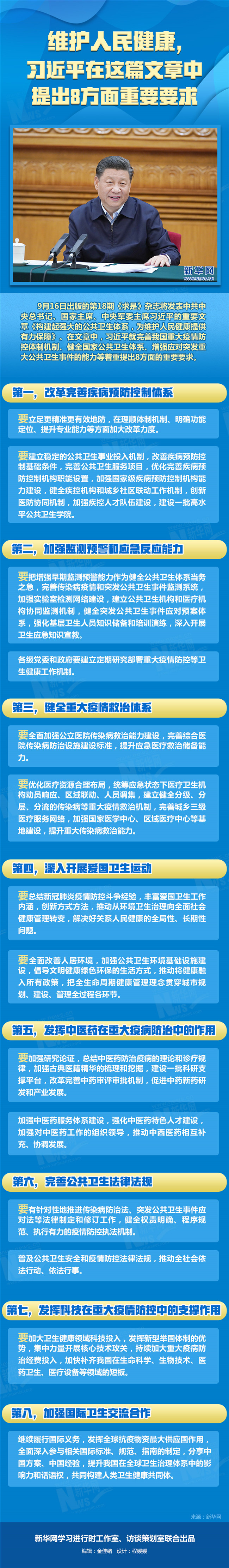 維護人民健康,習近平在這篇文章中提出8方面重要要求