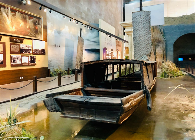 △渡江戰(zhàn)役紀(jì)念館內(nèi)的渡船