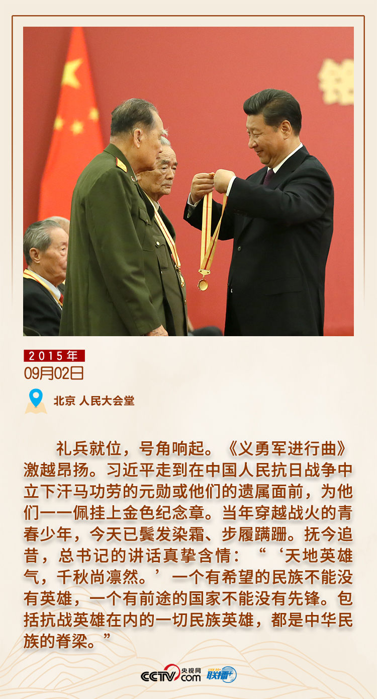 黨的十八大以來,國家通過立法確定了中國人民抗日戰(zhàn)爭勝利紀(jì)念日、烈士紀(jì)念日、南京大屠殺死難者國家公祭日。天安門廣場、人民大會堂、烈士陵園、抗日戰(zhàn)爭紀(jì)念館……這些鐫刻歷史記憶的地方,處處留下了習(xí)近平總書記緬懷先烈、崇尚英雄的身影和足跡。