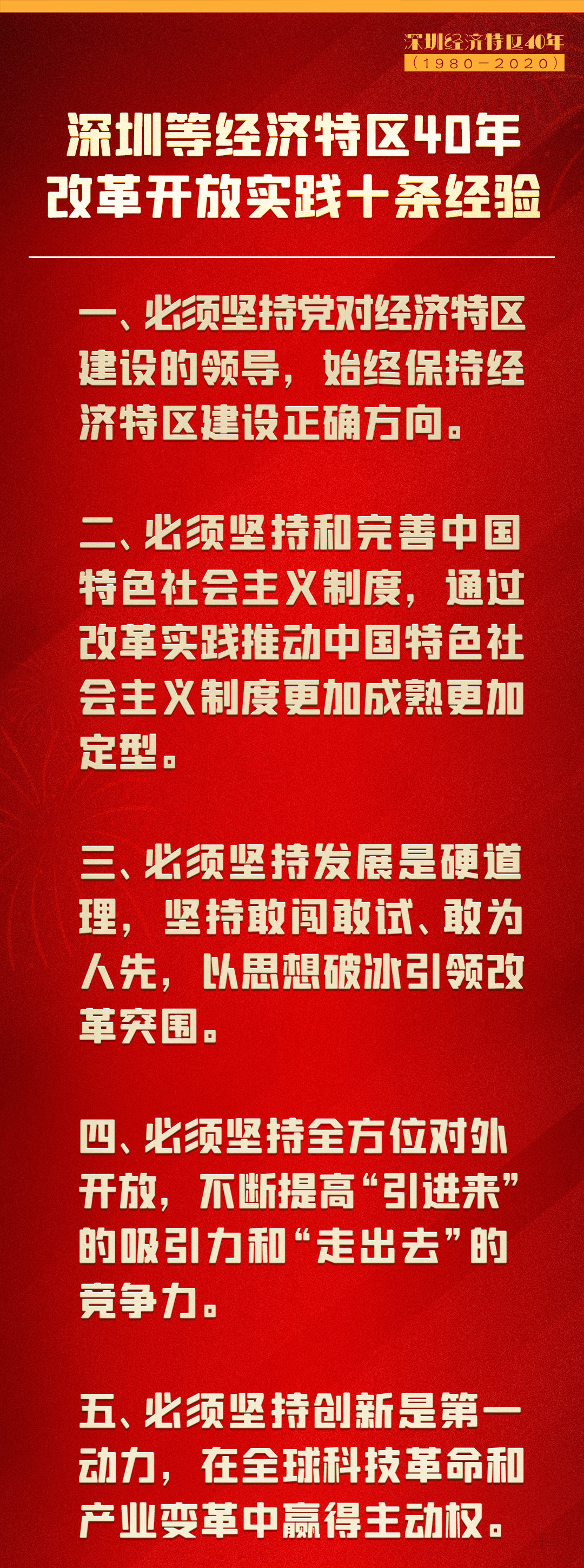 深圳等經(jīng)濟(jì)特區(qū)40年改革開放實(shí)踐,創(chuàng)造了偉大奇跡,積累了寶貴經(jīng)驗(yàn),深化了我們對(duì)中國(guó)特色社會(huì)主義經(jīng)濟(jì)特區(qū)建設(shè)規(guī)律的認(rèn)識(shí)。