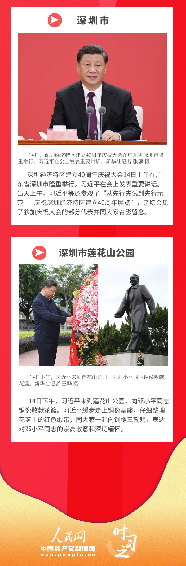 10月12日至13日,中共中央總書記、國家主席、中央軍委主席習(xí)近平先后來到廣東潮州、汕頭進行調(diào)研。14日,習(xí)近平出席深圳經(jīng)濟特區(qū)建立40周年慶祝大會并發(fā)表重要講話。