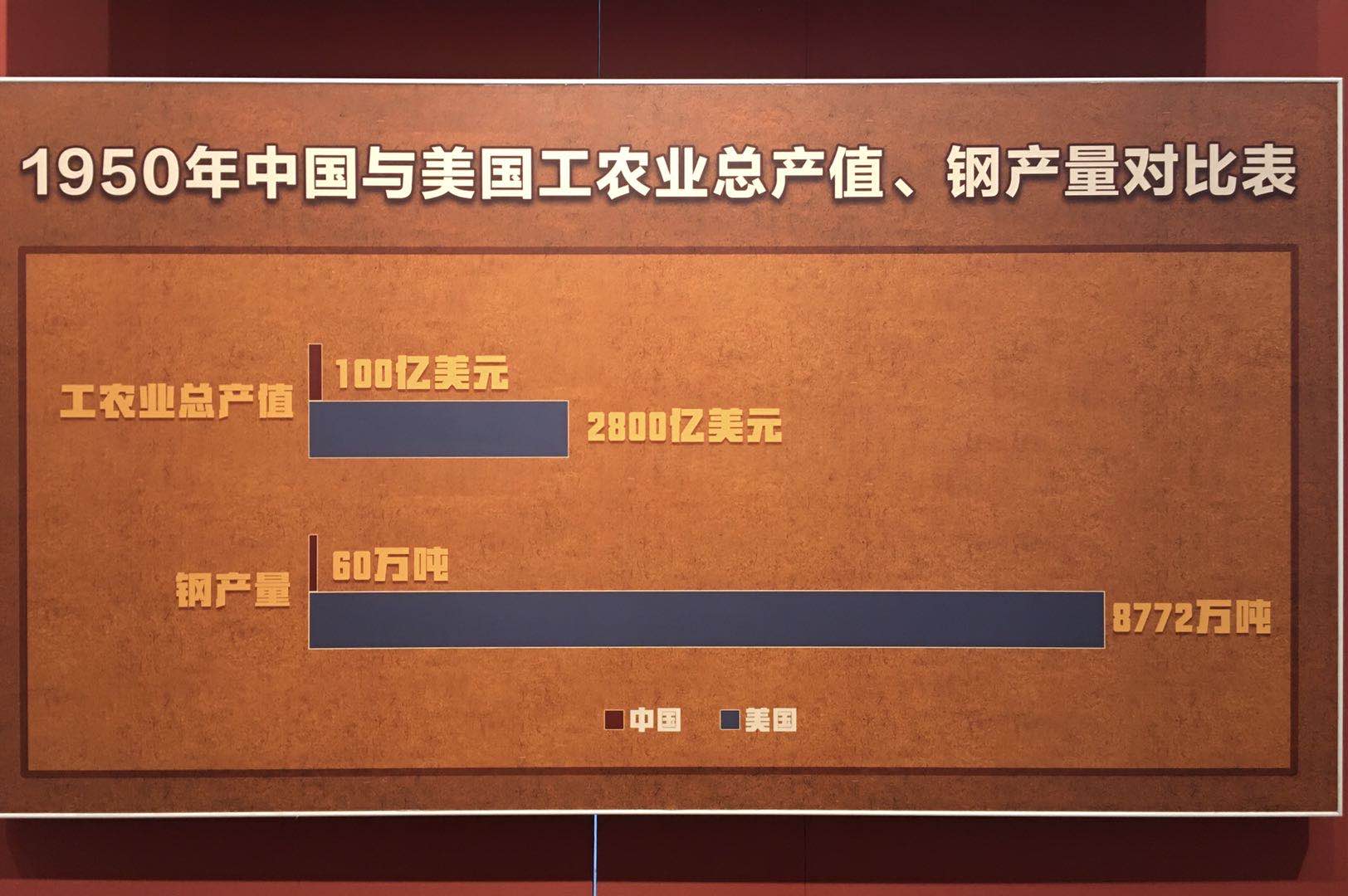 展廳里,一張對比圖,直觀展現(xiàn)了當時中美兩國在硬實力方面的巨大差距。