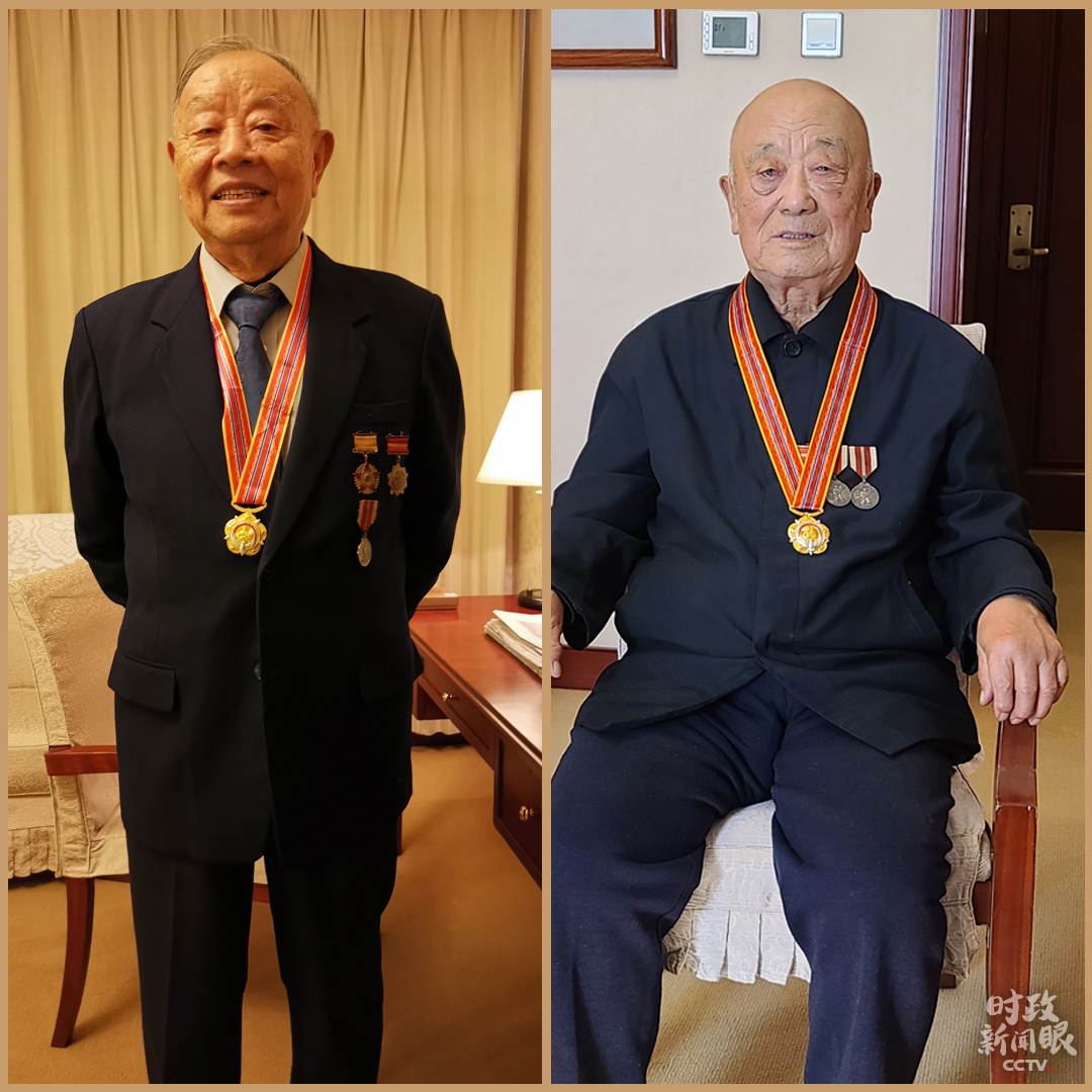 △今年86歲的張元杰(左)參加過上甘嶺戰(zhàn)役,榮獲三等功2次,90歲的王德啟(右)在抗美援朝期間榮立三等功4次。他們都出席了當天的紀念大會。(總臺央視記者王曉東、趙化拍攝)